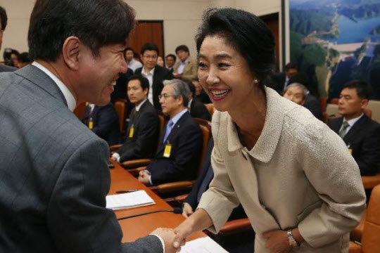 2014년 10월 27일 국정 종합감사가 열린 서울 여의도 국회 국토교통위원회 회의실에서 아파트 난방비 비리와 관련해 참고인으로 출석한 배우 김부선씨가 새누리당 하태경 의원과 인사를 나누고 있다.김 씨의 페이스북 계정에 글이 올라온 지 5시간여만에 총 29개의 댓글이 달렸다. 댓글 가운데 해당 계좌에 입금했다고 밝힌 글은 13건이며, 댓글에서 밝힌 개인별 금액은 적게는 3만원에서 10만원에 이른다. 이 가운데 후원한 통장 거래 내역을 사진으로 첨부해 공개한 사람들도 있다. 현재 김 씨의 페이스북 친구로 등록된 사람은 총 4849명으로 5000명에 육박한다.김부선의 소송비용을 마련하기 위한 목적의 이른바 ‘김부선 난방비리 척결 모금’은 지난달 초 사회운동가인 고은광순씨가 인터넷 게시판에 후원 독려글을 올리면서 시작됐다. 고은광순씨(59·여)는 충남 옥천에 한의원을 운영하는 한의사로 2000년 초반 열린우리당 중앙위원등을 역임했다.