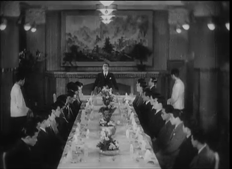 그러나 <반도의 봄>은 철저하게 당대의 조선총독부의 영화정책에 맞춰 제작되었다. 조선인 감독에 의해 만들어진 영화임에도 불구하고 영화의 주 언어는 일본어(!)다. 한국어가 나오는 장면에서는 어김없이 일본어 자막이 등장하고, 극 중 영화인들의 모임에서는 태평양전쟁의 무운장구를 바라는 황국 신민으로서의 길고 장대한 연설이 펼쳐진다.