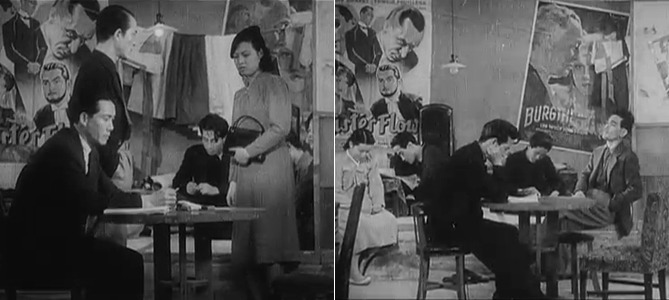 당시 영화제작사의 ‘열악한’ 모습. 뒤쪽에 붙어있는 포스터들이 눈에 띈다. 당시 기준으로 일본과 ‘우호국’이었던 독일영화의 포스터들이나 독일계 프랑스 감독의 영화 포스터들이다.