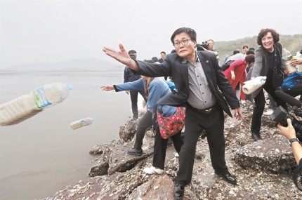한국의 보수는 끊임없이 북한인권 문제를 제기한다. 3일 뒤 싱가포르에서 열리는 북미정상회담에서도 인권 문제가 주요 의제로 다뤄져야 한다는 입장이다. 강제노역, 공개처형 등 북한의 인권 침해에 눈 감은 평화는 ‘가짜 평화’라고 주장한다. 하지만 보수정권 9년 동안 북한 체제의 붕괴를 겨냥한 인권 공세가 긴장 고조와 전쟁 위기만 초래했던 것도 사실이다. 사진은 북한인권단체 회원들이 지난달 초 강화군 해안가에서 북한 주민을 위한 쌀과 물품을 담은 페트병을 바다로 던지는 모습. 연합뉴스