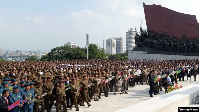 북한 김일성사회주의청년동맹 제9차 대회 참가자들이 23일 평양 만수대 언덕의 김일성·김정일 동상을 참배했다고 조선중앙통신이 보도했다.공유
