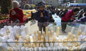 FacebookTwitterPinterest Women pray for students sitting exams. Prof Shin believes many people’s savings are inadequate because they prioritised spending on their children’s education. Photograph: Lee Jin-man/AP