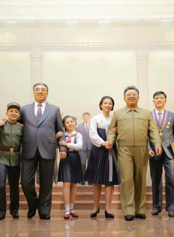 혁명운동사적관의 김일성·김정일 밀랍인형(노동신문)