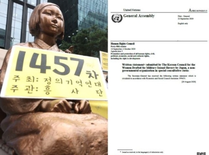 일본 우익단체가 유엔인권이사회에서 정의기억연대(정의연) 관련 논란을 언급하며 일본군 위안부 문제 자체를 부정하는 여론전을 펼친 것으로 전해졌다. 정의연은 “위안부 피해자를 위한 활동이 국내외에서 거센 공격을 받고...