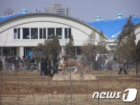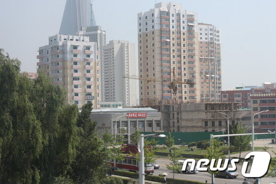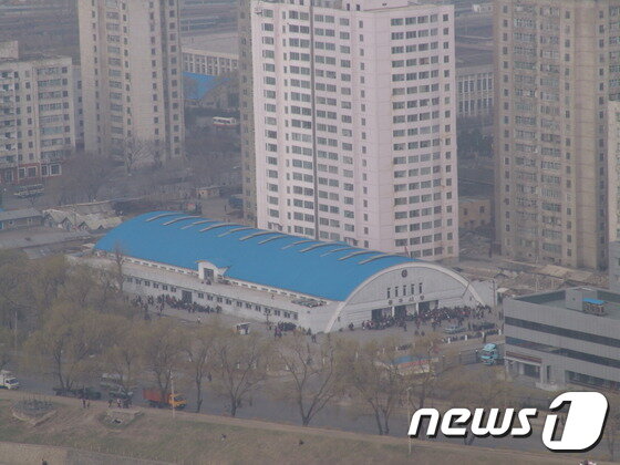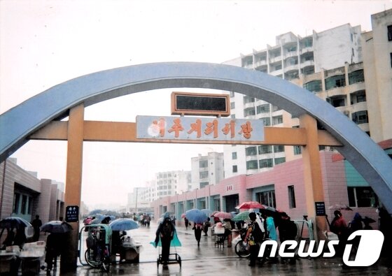 | 2005년 평양 대동강변 김책공업종합대학 근처에 새로 문을 연 중구시장 전경. (사진 제공: 미디어한국학)© 뉴스1 |