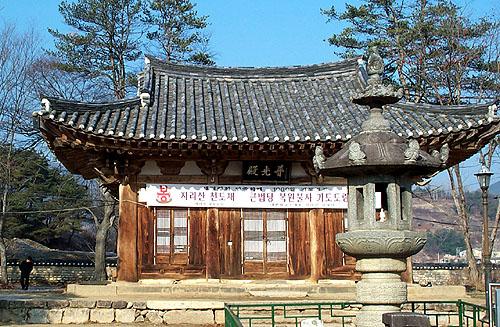 ▶천일기도가 행해지고 있는 실상사 보광전 전경. [사진 - 통일뉴스 최태영 객원기자]