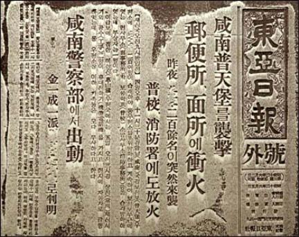 ▲ 보천보 전투를 다룬 동아일보 호외.변은진의 연구에 따르면, 일제 말기 국내 각지에서 조직된 소규모 비밀결사는 수는 100여개를 훨씬 넘는 것으로 추정된다. 이 시기 소규모 비밀결사들의 주요 활동 내용 중 하나는 민족적으로 각성하지 못한 조선민중을 계몽하여 민족의식을 고취시키는 것이었다. 이들은 중일전쟁 말기부터 조선의 독립방도는 무장투쟁일 수밖에 없다는 인식을 하기 시작했다. 이들의 사고방식에 큰 영향을 미친 것이 김일성 등의 만주 항일무장투쟁이었다. 이를 테면 ‘신동아동지회’는 만주의 ‘김일성 부대와 연락·합류하려’ 했고, 1940년 평양의 민족노동당은 “완전한 독립국가인 공화국 조선을 건설”하기 위해서는 “합법적 점진주의를 채용하면 도저히 성공할 수 없으므로 단연 무력에 의한 폭력혁명으로 해결을 기해야 성공할 수 있다”고 단정하고 무장폭동을 준비하기도 했다. 비밀결사에 참여한 청년·학생들은 만주로 건너가 무장부대에 합류하려는 의지를 보이는 경우가 많았고, 국외 무장세력이 국내로 진경하는 ’결정적 시기‘가 오면 민중봉기를 일으켜 그들과 함께 일제를 타도할 것을 고민했던 것이다.(주34)