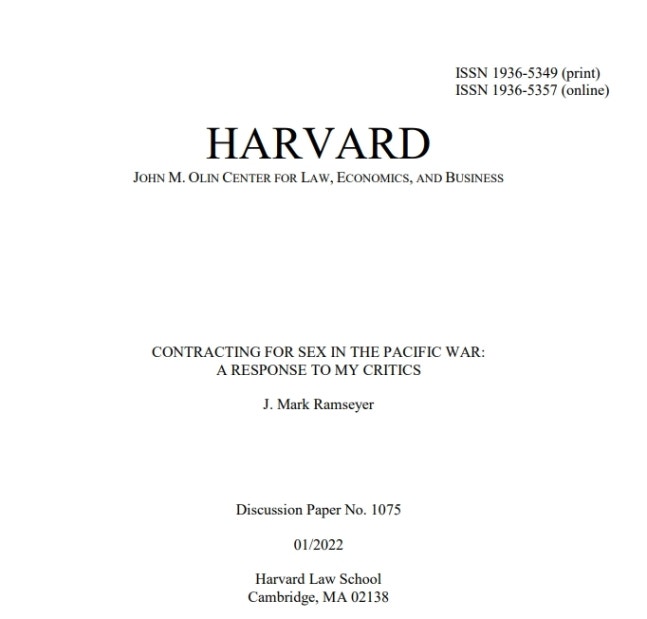 마크 램지어 하버드대 로스쿨 교수의 반박 논문[인터넷 캡처.재판매 및 DB 금지]