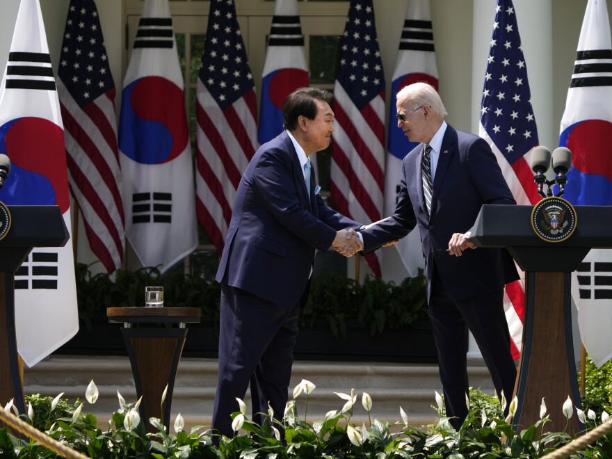 His remarks came during a state visit by by South Korean President Yoon Suk Yeol where the two leaders agreed to formalize a series to steps to try to deter North Korea.