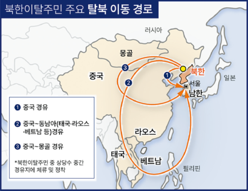 △ 주요 탈북 이동 경로 참고 (ⓒ고대신문 제공)
