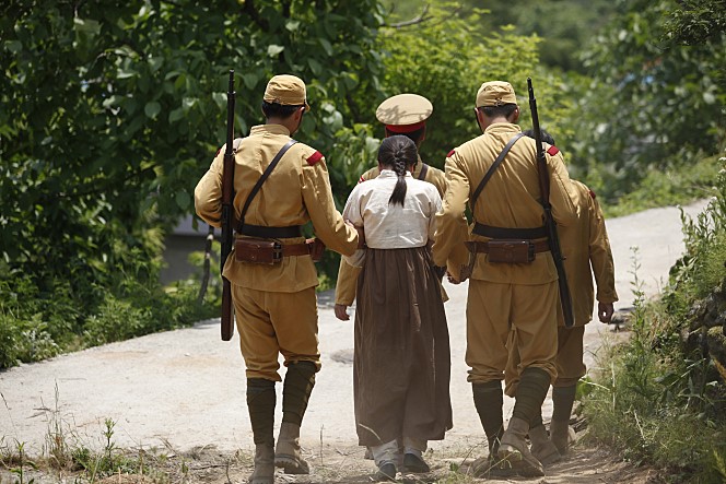 이: 일제 강점기를 살아간 사람들의 모습을 있는 그대로 담아내고 싶었습니다. 당시 개봉한 영화, 사진, 기록들을 부지런히 찾아 보았습니다. ‘위안부’에 관련된 소품이나 의상, 사건들도 가능한 실제에 가깝게 묘사하기 위해 노력했습니다. 어떠한 과장 없이 있는 그대로 묘사해도 충분히 비극적이라고 느껴졌기 때문입니다. 대부분 사실적인 방향으로 묘사하고자 했지만 그들이 함께 걷던 ‘눈길’은 아름다웠으면 하는 생각이 들어서 서정적인 촬영지를 찾아내기 위해 스탭들과 노력을 했습니다.