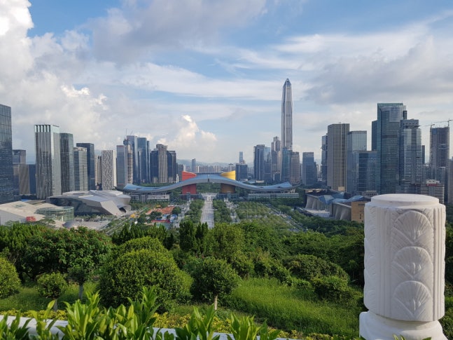 덩샤오핑 동상 앞 선전시 중심가 전경. 덩은 개방특구 설립 당시 마천루가 즐비한 선전의 현재 모습을 상상이나 했을까?덩의 동상 앞은 마천루(摩天樓)가 즐비한 선전의 시내 중심 거리다. 그의 눈앞엔 선전에서 가장 높은 118층짜리 핑안(平安)국제금융센터부터 장쑤(江蘇)빌딩, 타이핑(太平)금융빌딩 등 50~60층의 대형빌딩이 즐비하다. 과거엔 홍콩이 빌딩 숲을 이뤘지만 지금은 선전이 더 빽빽하다. 덩은 선전의 이런 상전벽해(桑田碧海)를 과연 상상이나 했을까?