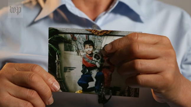 미국 워싱턴포스트와의 지난 6월 인터뷰에서 북한 정치범수용소에 갇힌 것으로 추정되는 아들 최경학씨의 어린 시절 사진을 들어 보이는 허영희씨. ⓒ 워싱턴포스트 홈페이지 캡처------