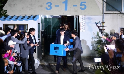 원본보기▲ 23일 오후 서울 서초구 조국 법무부 장관 자택에서 압수수색을 마친 검찰 관계자들이 입구를 빠져 나와 차량으로 향하고 있다.