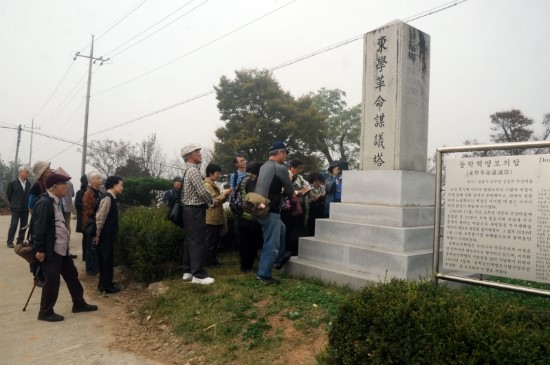 전주에서 8시 반에 출발하여 정읍 사발통문모의탑 무명농민군 위령탑 고부관아터가 있는 초등학교 전봉준 고택을 보고 조선시대 관광농원인 송참봉 집에서 점심을 먹고 황토현전승탑 동학농민혁명기념관 백산성 만석보를 보고 리베라 호텔에 돌아왔다.