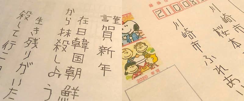 「私たちは殺されてしまうの?」在日コリアン殺害宣言の年賀状に高まる不安Kota Hatachi · Jan. 23, 2020