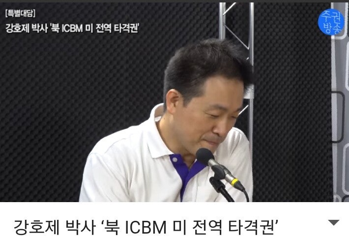[뉴스스타트 특별대담] - 강호제 박사, '북 ICBM 미 전역 타격권' 북한 역사학자이자 ‘과학기술로 북한 읽기’의 저자인 강호제 박사를 모시고 ‘북 ICBM발사가 한반도 정세 및 국제질서 변화에 어떤 영향을 미칠 것인가’에 대해 이야기 나누었다. 강호제 박사는 ‘북ICBM발사에...