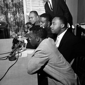 FacebookTwitterPinterest A news conference in Montgomery, Alabama, in 1961. In the foreground is John Lewis. Others, left to right: James Farmer, the Rev Ralph Abernathy and the Rev Dr Martin Luther King Jr. Photograph: RWT/AP