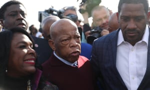 FacebookTwitterPinterest John Lewis arrives to speak to the crowd at the Edmund Pettus Bridge crossing reenactment marking the 55th anniversary of Selma’s Bloody Sunday on 1 March 2020 in Selma, Alabama. Photograph: Joe Raedle/Getty Images