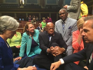 FacebookTwitterPinterest John Lewis and other members of Congress staging a sit-in on the floor of the House of Representatives in 2016, demanding that the Republican-led body vote on gun-control legislation following the Orlando nightclub massacre. Photograph: Handout/AFP/Getty Images
