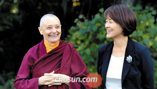 텐진빠모(왼쪽) 스님에게 조은수 교수가 물었다. "한국 청소년들의 관심은 온통 수능 성적과 대학 입시에 쏠려 있어요." 스님은 "긴 인생을 먼저 보라. 당신이 어느 대학을 나왔는지 세상 사람들은 관심이 없다. 자기가 원하는 게 무엇인지, 정말 하고 싶은 일이 무엇인지를 모르면 세상 사람들의 말에 이리저리 휘둘리다 인생을 망칠 것”이라고 말했다. /이덕훈 기자텐진 빠모 스님은 티베트 여승이 입는 붉은 밤색 승복을 입고 있었다. 파르라니 삭발한 머리가 새하얀 피부와 묘하게 어울렸다. 조은수 교수와 마주한 텐진 빠모 스님은 얼굴 가득 따뜻한 미소를 띠고 파란 눈동자로 조은수 교수의 두 눈과 길가에 나뒹구는 노란 은행잎, 부서질 듯 깨끗한 하늘을 바라봤다.