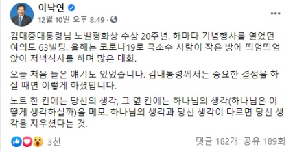 이낙연 민주당 대표가 페이스북에 올린 글. 페이스북 캡처