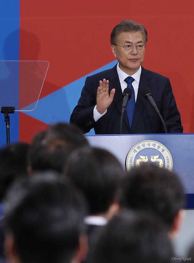 그 때문일까? 야당 대표 시절에 박근혜 대통령의 불통을 그렇게 비판했던 문재인 대통령이 박근혜의 재임기간과 비슷한 시기에 이른 지금, 대국민 기자회견 횟수에서 박근혜 5회에 비해 겨우 한 번 더 많은 6회에 그쳤을 것이라고는 아무도 상상하지 못했다. 오만과 불통의 상징이었던 이명박은 20회였고, 김대중 대통령과 노무현 대통령은 각각 150회였다고 기자협회보는 지적했다.