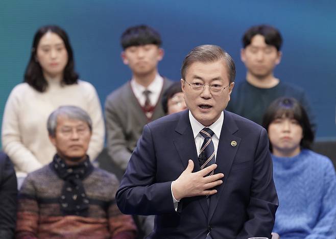 ▲ 문재인 대통령이 2019년 11월 19일 오후 서울 상암동 MBC에서 '국민이 묻는다, 2019 국민과의 대화'를 하고 있다. 이 자리에서 문 대통령은 "전국적으로는 부동산 가격이 오히려 하락했을 정도로 안정화 되고 있다"고 말했다.