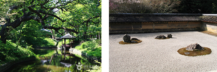 창덕궁의 '후원後苑(또는 비원祕苑)'과 료안지龍安寺의 '카레산스이枯山水'식 정원