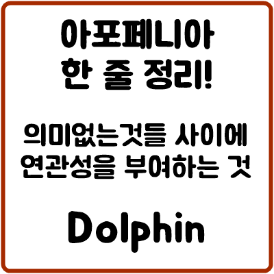 그리스어로 ‘apo’는 ‘~으로부터 벗어나는(away from)’의 뜻이고, ‘phaenein’은 ‘보여 준다(to show)’는 의미를 지닌 말이다. 둘을 연결한 아포페니아는 실제 보이는 것과 달리 이상한 연결성을 찾아내는 것을 의미한다.