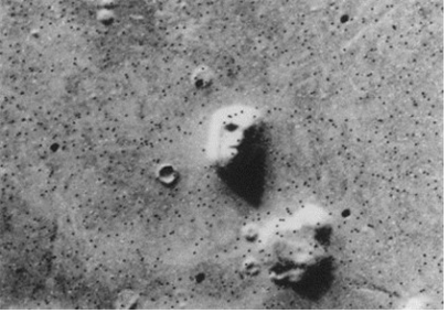 1976년 화성 탐사선이 촬영한 ‘화성의 얼굴’. 화성 표면에 사람 얼굴처럼 도드라진 이 지형물은 파레이돌리아의 예(사진 참조)이다.