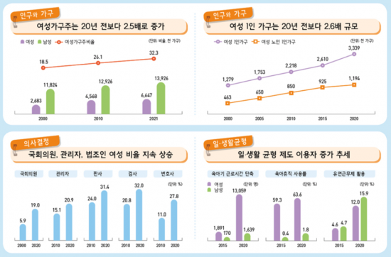 여성가족부, 2021 통계로 보는 여성의 삶 공개