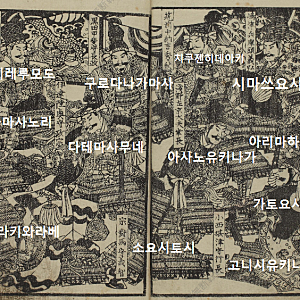 회본조선정벌기 絵本朝鮮征伐記 연재 2에혼조선정벌기 (絵本朝鮮征伐記 회본조선정벌기) 1854년. 우타가와 사다히데(橋本貞秀) 作 풀버젼을 보여주는 싸이트 http://base1.nijl.ac.jp/iview/Frame.jsp?DB_ID=G0003917KTM&C_CODE=HRSM-00064 동 싸이트의 스캔본에서 21, 35, 42, 46, 50, 57, 68, 71, 76, 82, 91, 96, 102, 106, 117, 122, 127, 132, 141, 146 의 삽화를 본편에서 다룬다. 21. 기자조선 (우측 하단 관리의 모자가 조선식 갓이다) 주나라 무왕이 은의 주왕의 무도함을 정벌한 후에, 기자를 조선에 봉해 그 백성들에게 농사짓고 뽕치고 길쌈하는 기술과 법도를 교화하다. 35. 진구코고 신공황후 삼한정벌 2한(신라, 백제)을 정복코저, 누선 3천석을 이끌고 스와 , 스미요시 등을 거느리고 바다를 건넜다. 용신이 바친 두개의 구슬로 오랑캐를 일거에 정토하다. (".... 고려의 오랑캐들은 병선 일만여 척에 타고 해상으로 나와서 상대한다. 수만명의 오랑캐들은 한사람도 남김없이 바다에 빠져 사라졌다. 이것을 보고 삼한 오랑캐의 왕은 스스로 사죄하여 항복하였으므로, 신공황후는 활 끝으로 '고려의 왕은 우리 일본의 개다'라고 석벽에 쓰고는 돌아오셨다. 그로부터 고...