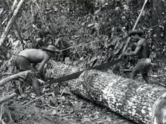 林から切り出した木を使い、ピメンタ(コショウ)栽培用の支柱を作っている。
