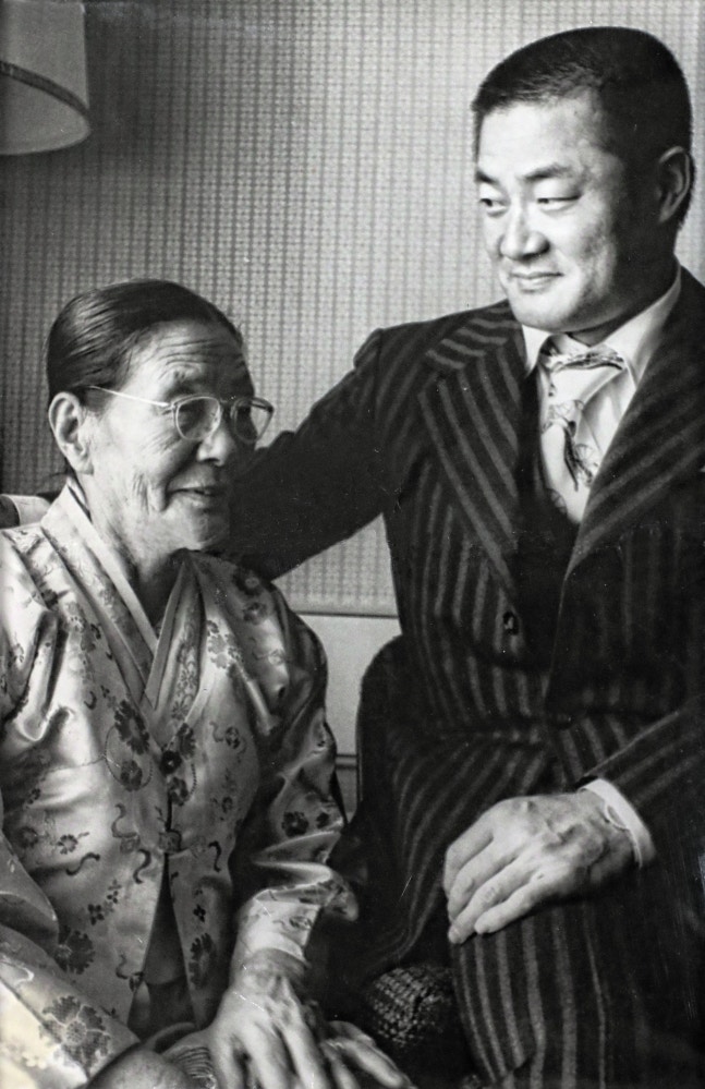 1977년 1월 한국을 일시적으로 방문한 장훈(오른쪽)이 어머니 박순분 여사와 함께 본지와 인터뷰를 하면서 찍은 사진.