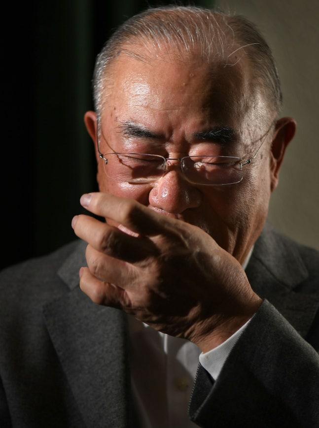 2020년 1월 일본 마이니치 신문과 인터뷰에서 눈물을 보인 장훈./마이니치신문 제공