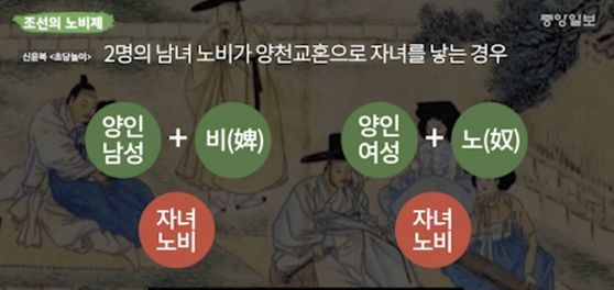 고려시대엔 일천즉천(一賤卽賤), 즉 부모 중 한 명만 노비이면 자녀도 노비가 됐고, 노비와 양인의 결혼 자체도 불법이었습니다. 그래서 원래 노비였던 이들만 대물림됐기 때문에 크게 늘어나지 않았습니다.