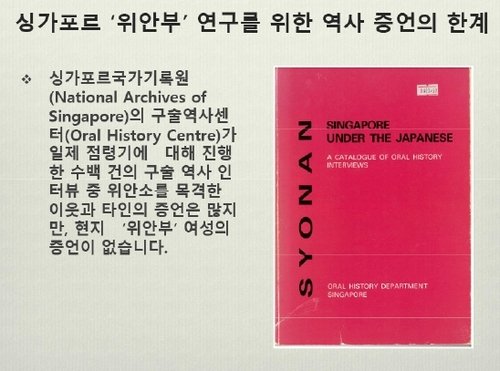 문제는 피해 당사자인 싱가포르 위안부 여성의 목소리가 없다는 점이다.