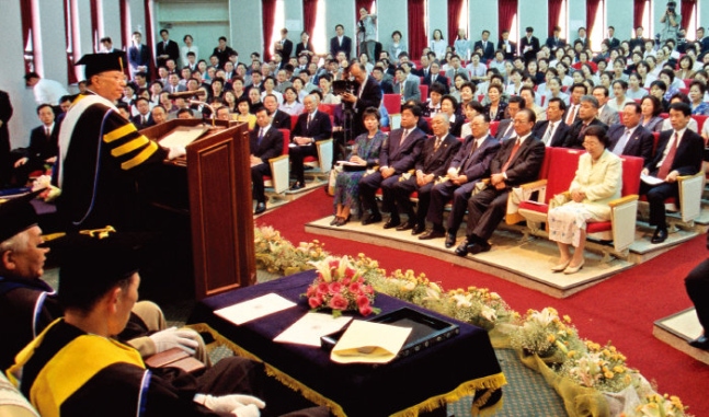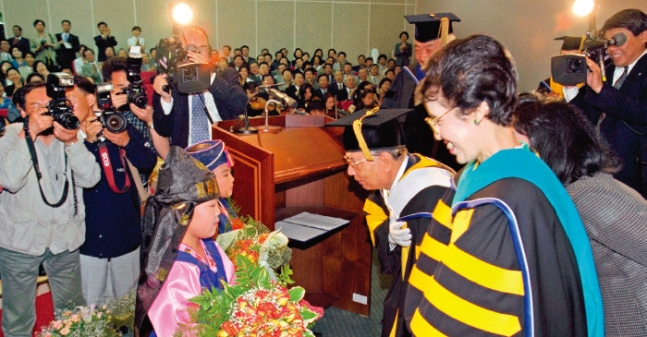 1999년 5월 17일 제주대에서 이케다 다이사쿠 SGI 회장에 대한 명예문학박사 학위 수여식이 열렸다. [SGI]