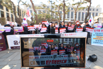 윤석열 대통령 탄핵에 반대하는 연세대 학생들이 2월10일 학내에서 기자회견을 열고 있다. ⓒ시사IN 이명익그래서 나는 극우의 주류화 현상이 보기만큼 강력하지는 않은 것 같다. 현재 탄핵 반대 여론은 30% 선이다. 이들 전부가 극우화된 여론이라고 볼 수는 없다. 정치적 소수파화의 두려움 때문에 헌정 체제를 기꺼이 흔들 준비가 된 ‘신념형 극우파’는 유권자의 20%를 넘지 않을 것이으로 보인다. 이 숫자는 12·3 직후 아직 계엄 찬반 이슈가 충분히 정치화되지 않았던 초기에 나온 계엄 지지 여론 규모와 비슷하다.