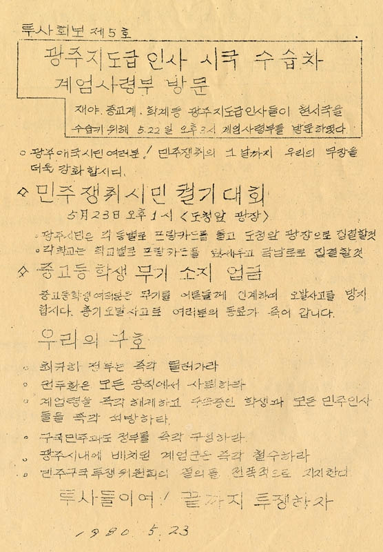 계엄사 검열로 신문과 방송이 사라진 광주에서