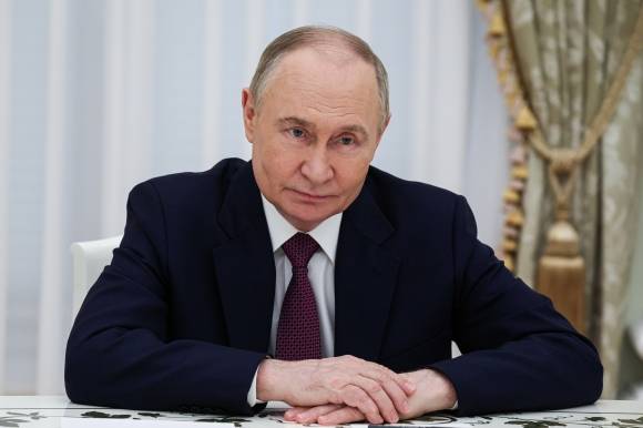 29일(현지시간) 블라디미르 푸틴 러시아 대통령이 크렘린궁에서 아베 신조 전 일본 총리의 부인 아키에 여사와 만나 꽃다발을 건네고 있다. 2025.5.29 크렘린궁블라디미르 푸틴 러시아 대통령이 29일(현지시간) 크렘린궁에서 아베 신조 전 일본 총리의 부인인 아키에 여사와 만났다.