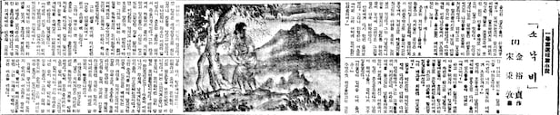 1935년 조선일보 신춘문예에 1등 당선된 김유정 단편 '소낙비' 첫회. 연재소설처럼 삽화까지 더해 6회까지 실렸으나 일제에 의해 연재가 중단됐다.