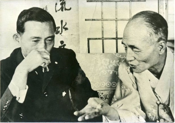 1962년 서울 수유리 팔봉 김기진 집을 찾은 박정희 최고회의의장. 박 의장은 이 무렵 김기진 집을 자주 찾아 얘기를 나누곤 했다. 김기진은 1934년 넉달간 낮에는 금을 찾아 헤매고 밤에는 글을 쓰는 '투잡'생활을 했다./김용한씨 제공