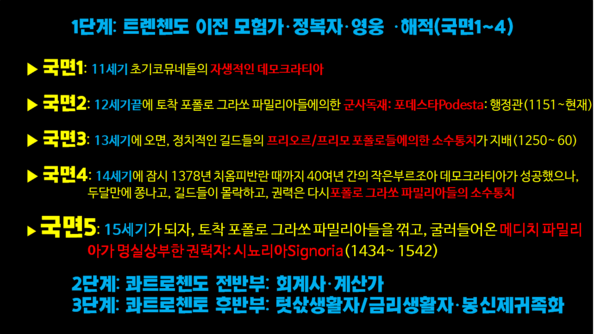※ 11~ 15세기까지 이탈리아 코뮤네들에서 3신분 포폴로 그라쏘 곧 그랜드 부르조아 자유주의의 변천 또는 변질과정