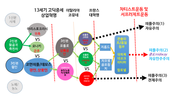※ 13세기 이탈리아 코뮤네에서 최초로 3신분 포폴로 부르조아의 피플주의인 자유주의·개인주의가 발현됐다