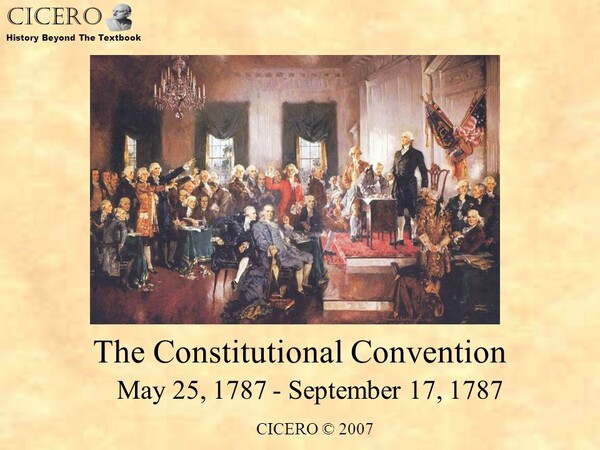 ※ 필라델피아 헌정컨벤션(1787.5.25~ 1787.9.17): 1776년 제퍼슨이 독립선언문을 발표했던 독립기념관에서 1787년 5월 25일부터 9월 17일까지 이루어졌다. 애초의 목표는 영국으로부터의 독립을 이룬 미국의 지배를 위해 각 주의 요구사항을 반영한 통일된 헌정을 만들려던 것이었는데, 결과적으로는 미국 역사에 중대한 획을 긋는 연방헌정을 제정하기에 이르렀다.