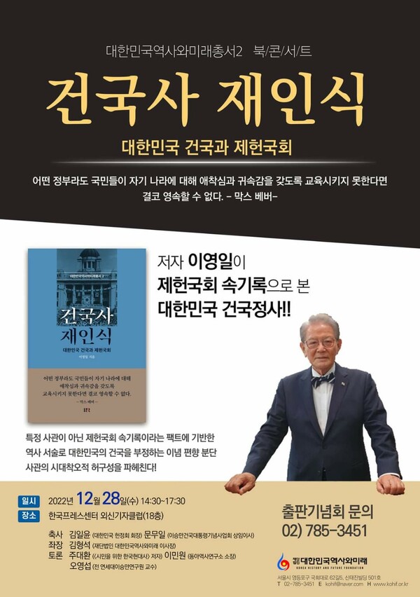 편집자 주: 아래 칼럼은 지난달 28일 진행한 이영일의 <건국사 재인식> 북콘서트에서 필자가 발표한 서평입니다.