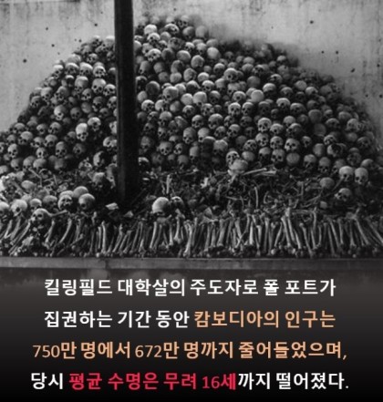 스탈린이 저지른 우크라이나 홀로도모르(1932~ 33), 모택동의 대약진운동-인민공사-문화대혁명(1958~ 76) 때의 떼죽음, 김일성-박헌영에의한 6.25, 캄보디아 크메르루주의 킬링필드(1975~ 79) 등등은 공산전체주의의 잔인함의 실상에대한 명백한 증거들이다.