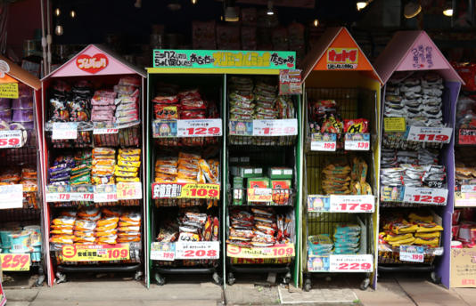 도쿄 신오쿠보의 한 상점에서 한국 라면이 판매되고 있다. 연합뉴스
